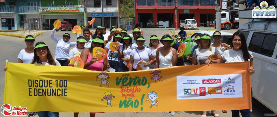 Através das secretarias municipais de Educação e da Assistência Social, a Prefeitura de Paripueira aderiu à campanha contra o trabalho infantil da Secretaria de Estado de Assistência e Desenvolvimento Social. Segundo o prefeito Haroldo Nascimento, o município já trabalha essa conscientização há mais tempo e, em parceria com o estado, as ações serão ampliadas e fortalecidas.